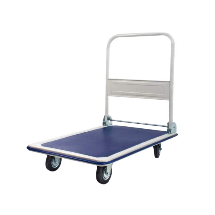Платформенная тележка PROLIFT ТП150 - удобное оборудование для быстрого и безопасного перемещения различного рода грузов на короткие расстояния. Является незаменимым помощником на промышленных и торговых складах, на заводах и в цехах. Благодаря своим небольшим габаритам модель удобно использовать в местах с ограниченным пространством. Тележка оборудована четырьмя колесами, два из которых поворотные, а два - не поворотные. Колеса изготовлены из литой резины, имеют долгий срок службы и легко устанавливаются и меняются с помощью входящих в комплект метизов. Широкая ручка обеспечивает удобство хвата и управления тележкой. Специальная прорезиненная поверхность платформы модели предотвращает соскальзывание грузов при движении даже по неровным поверхностям. Для снижения вероятности получения травм и удобства прохождения в узких проходах края платформы имеют закругленную форму. При необходимости ручку тележки можно сложить, благодаря чему при хранении и транспортировке тележка занимает мало места. Платформенная тележка ТП150 обладает отличными эксплуатационными характеристиками и высокой прочностью конструкции благодаря увеличенной толщины стали.